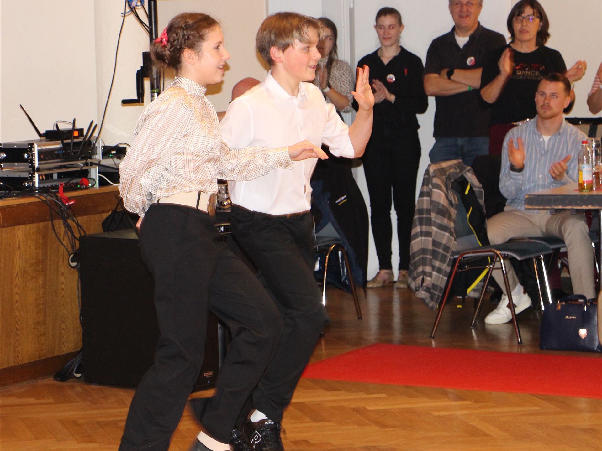 In der Vorrunde lagen Belen Douwes (16) & Theodor Niedermeier (17) punktgleich mit Carla Preuhs (15) & Louis Schraml (14) – beide Hohenbrunner Paare qualifizieren sich fürs Finale. Direkt davor: Liya Henke (14) & Maximilian Schraml (16).
